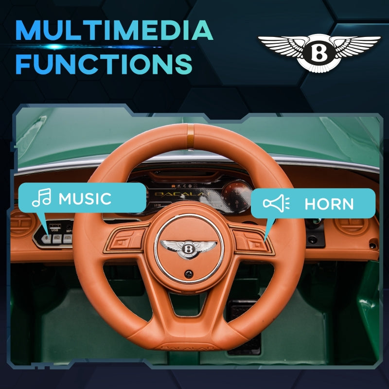 Bentley 12V Kids Electric Ride On Cars With Remote Control, Horn, Lights, Music, Suspension